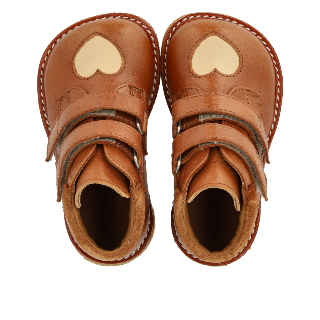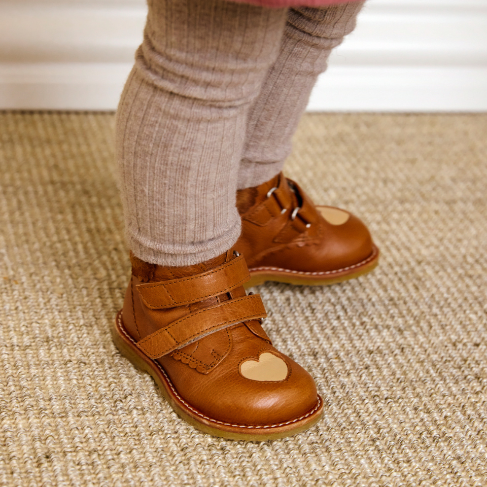 Beginner shoe with punched contrast heart