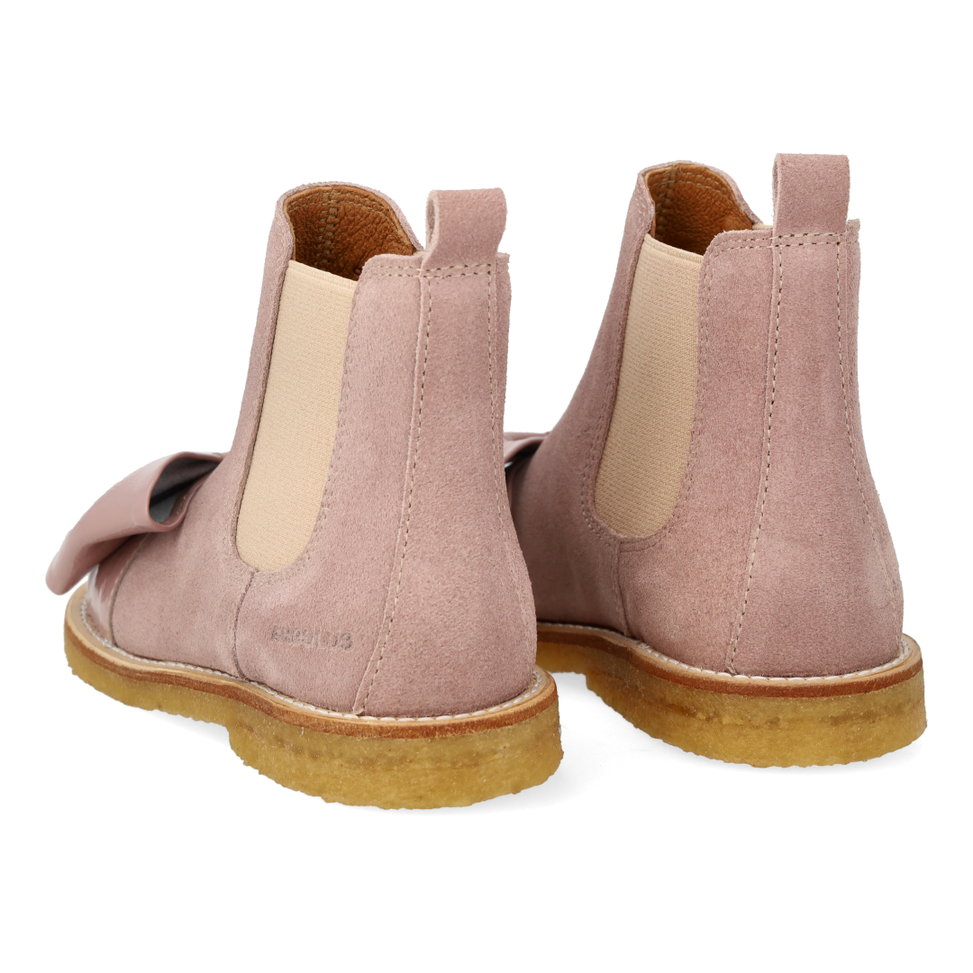 Chelsea boot with patent leather knot and bow
