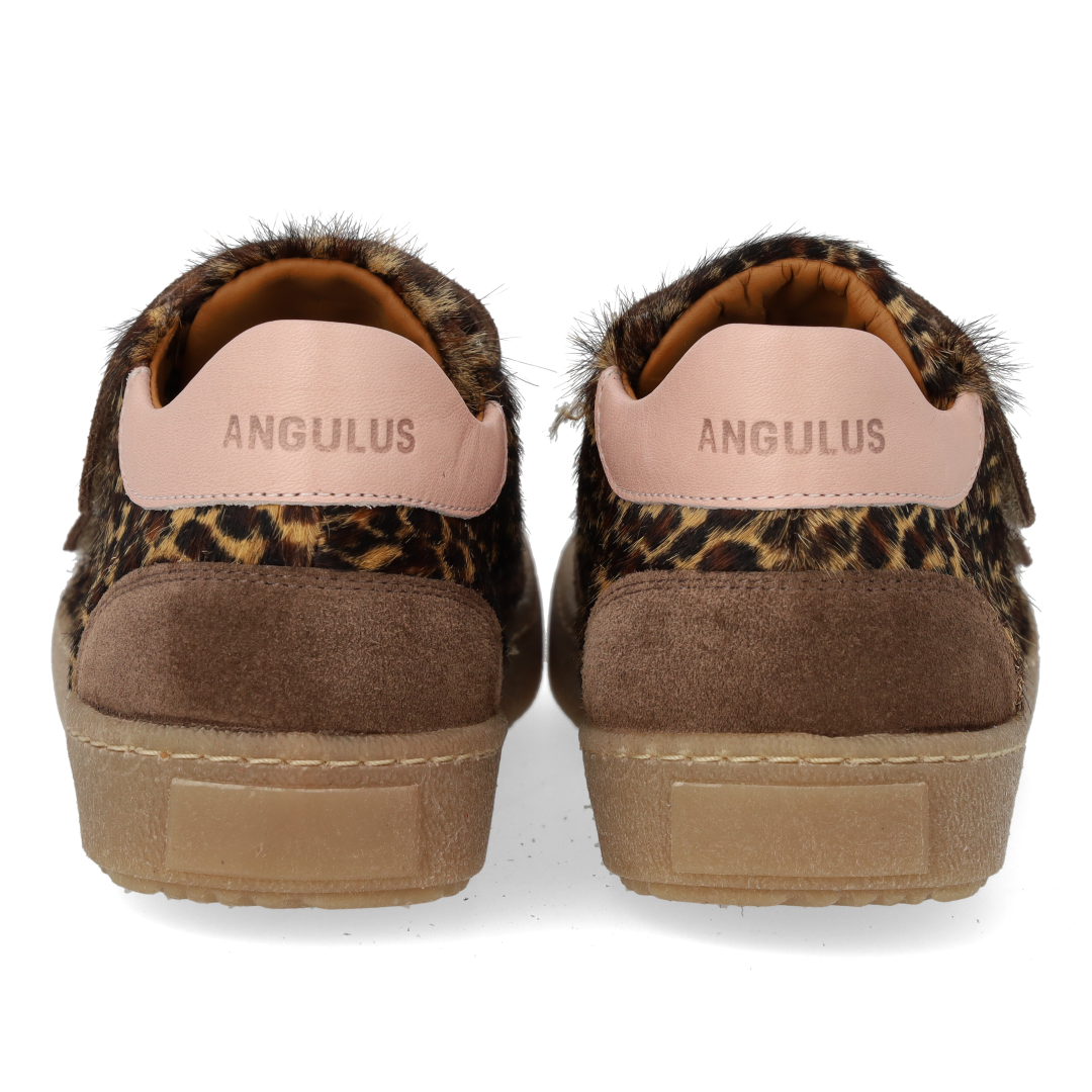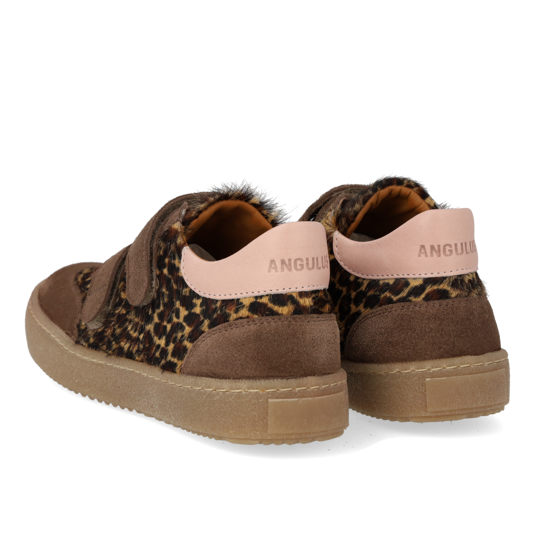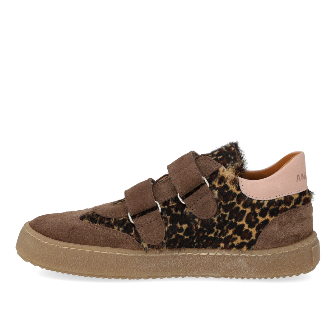 Sporty court style sneaker in leather and suede with leopard print pony fur. The sneaker features adjustable velcro straps for an optimal personalised fit that also makes it easy to get on and off, a fixed heel counter with padded contrast collar for extra stability and comfort, padded insole, chrome-free leather lining and a light, soft and flexible anti-slip rubber sole. Crafted in natural and breathable leather. Designed in Denmark and handcrafted with love in Portugal. Always measure the child's foot before buying to ensure you get the right size. We recommend a growth allowance of 0.8 cm.