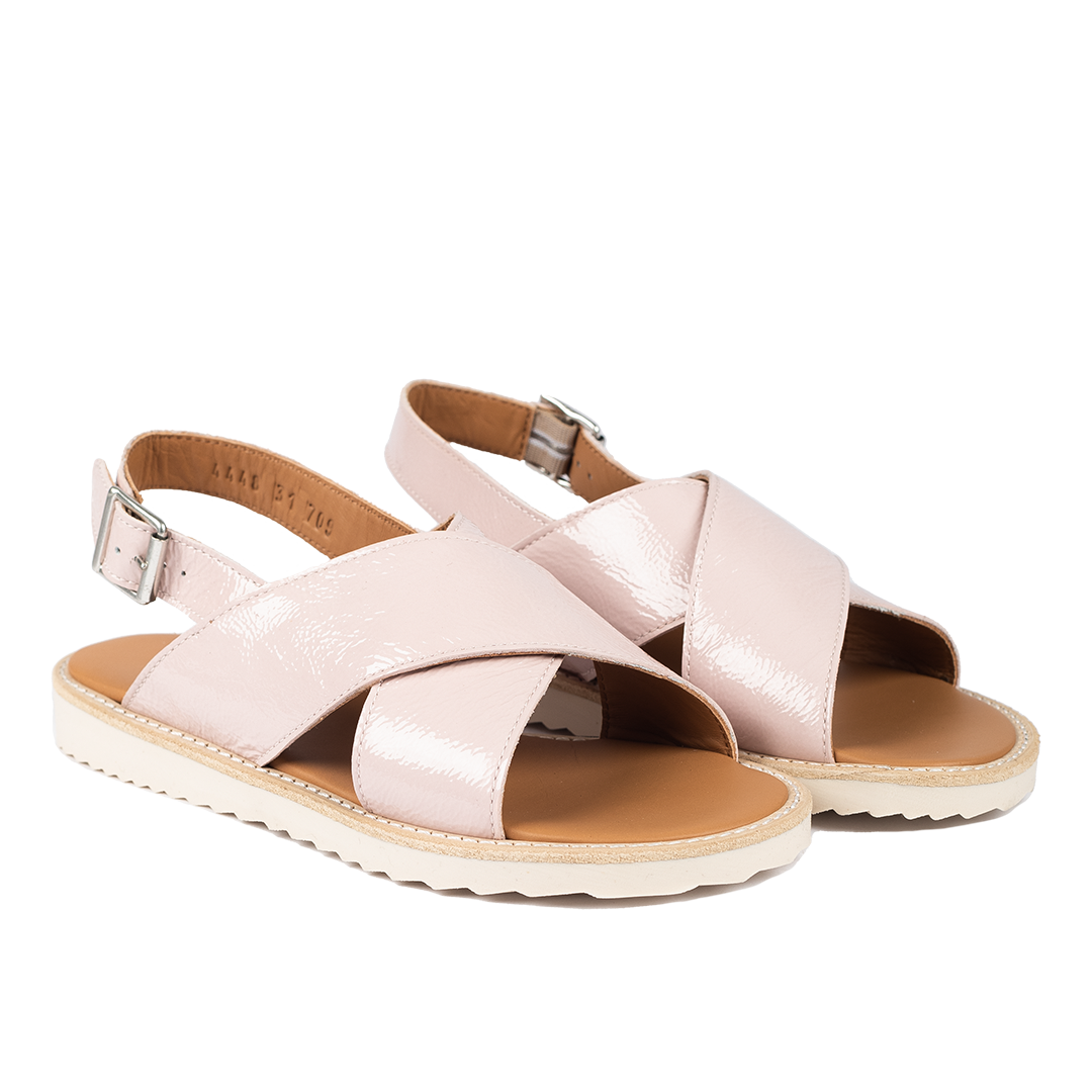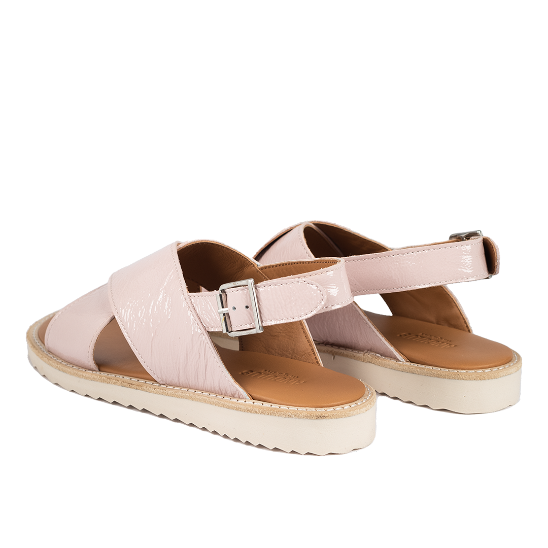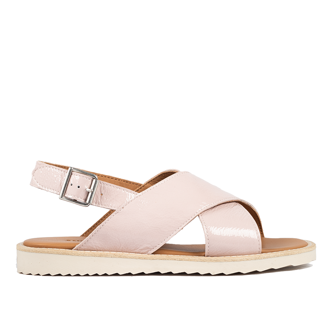 Cross sandal with buckle closure