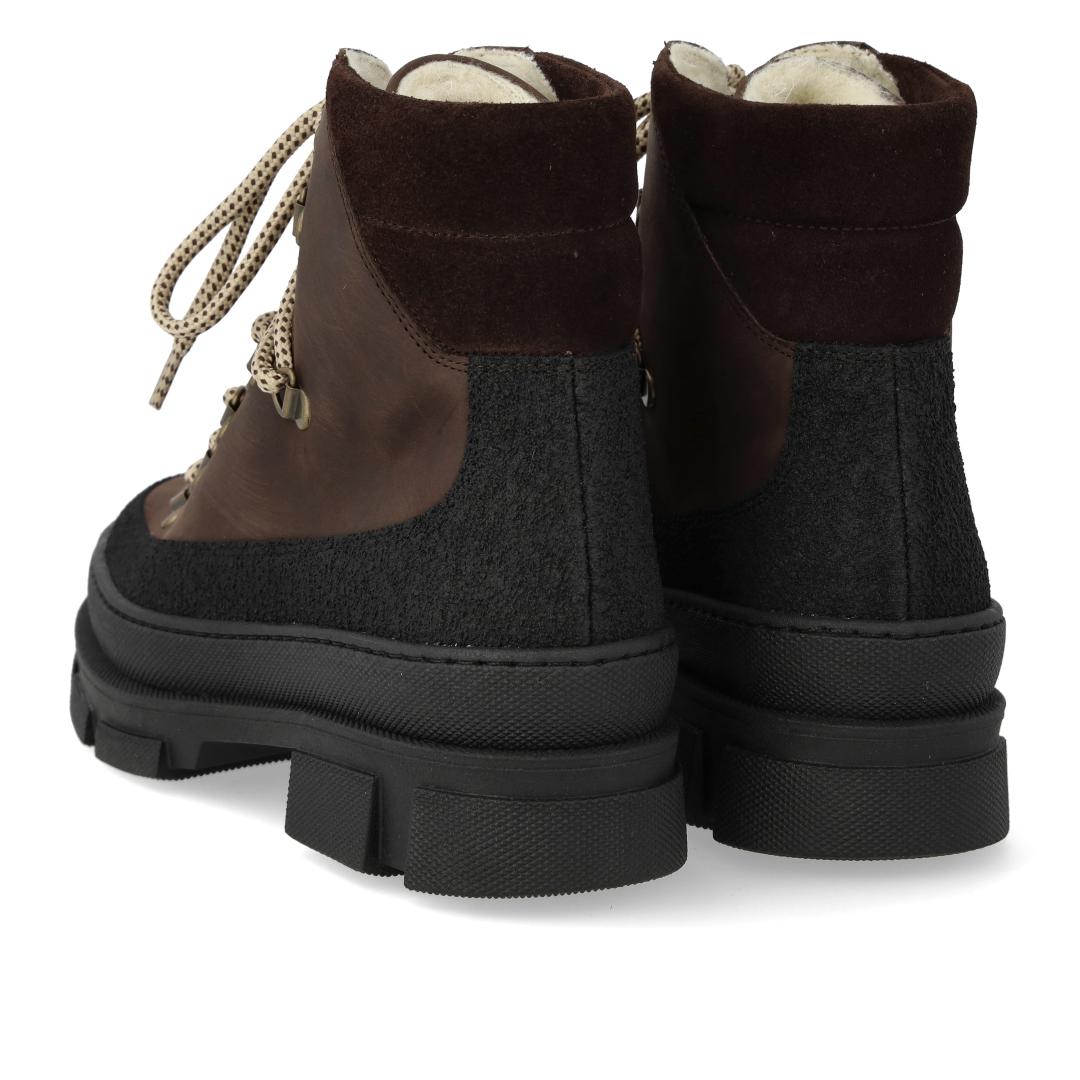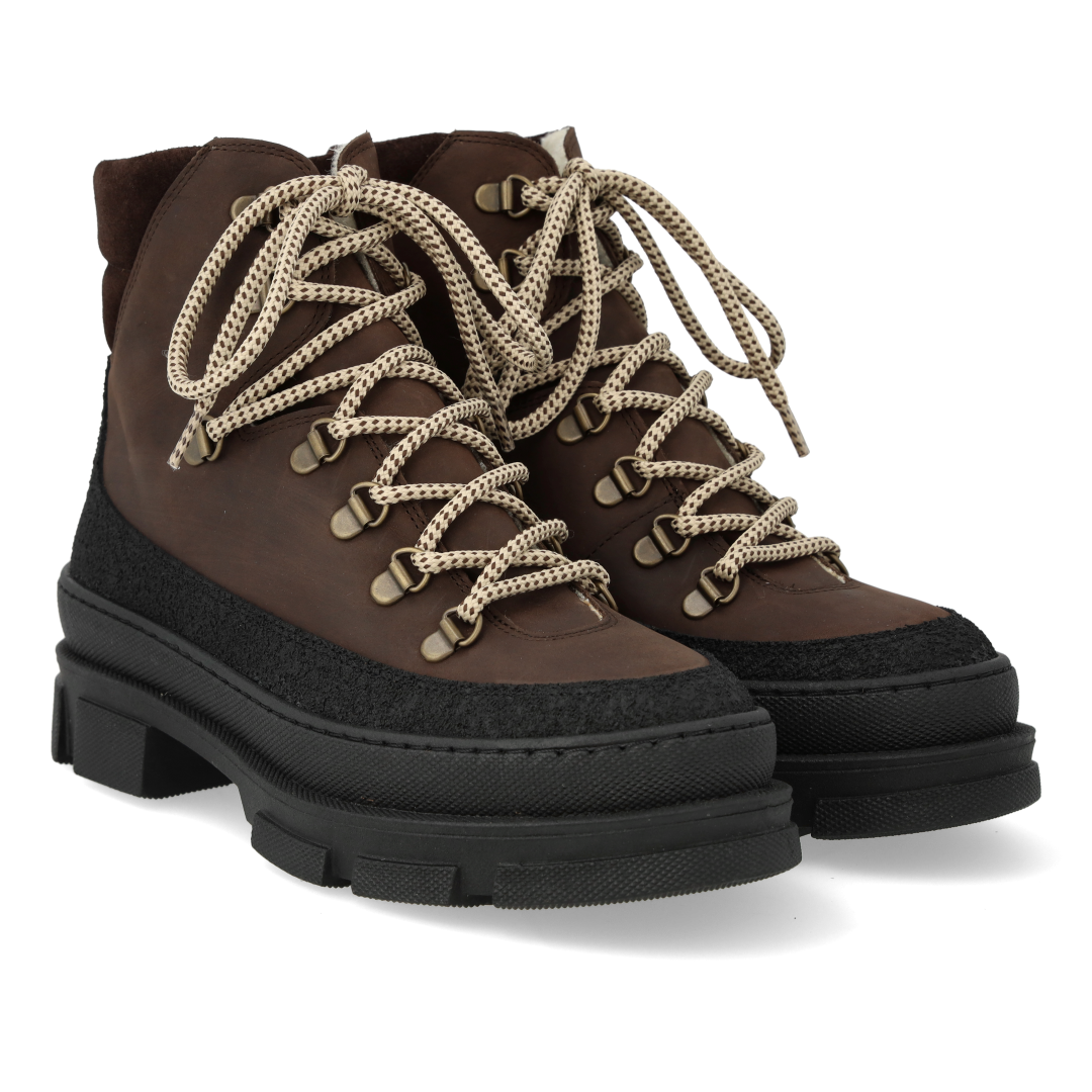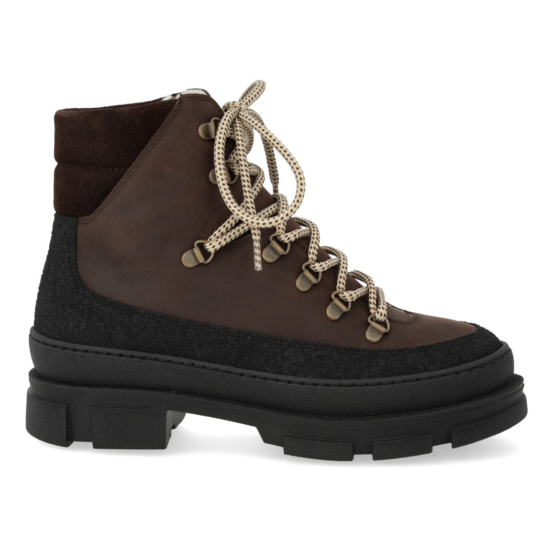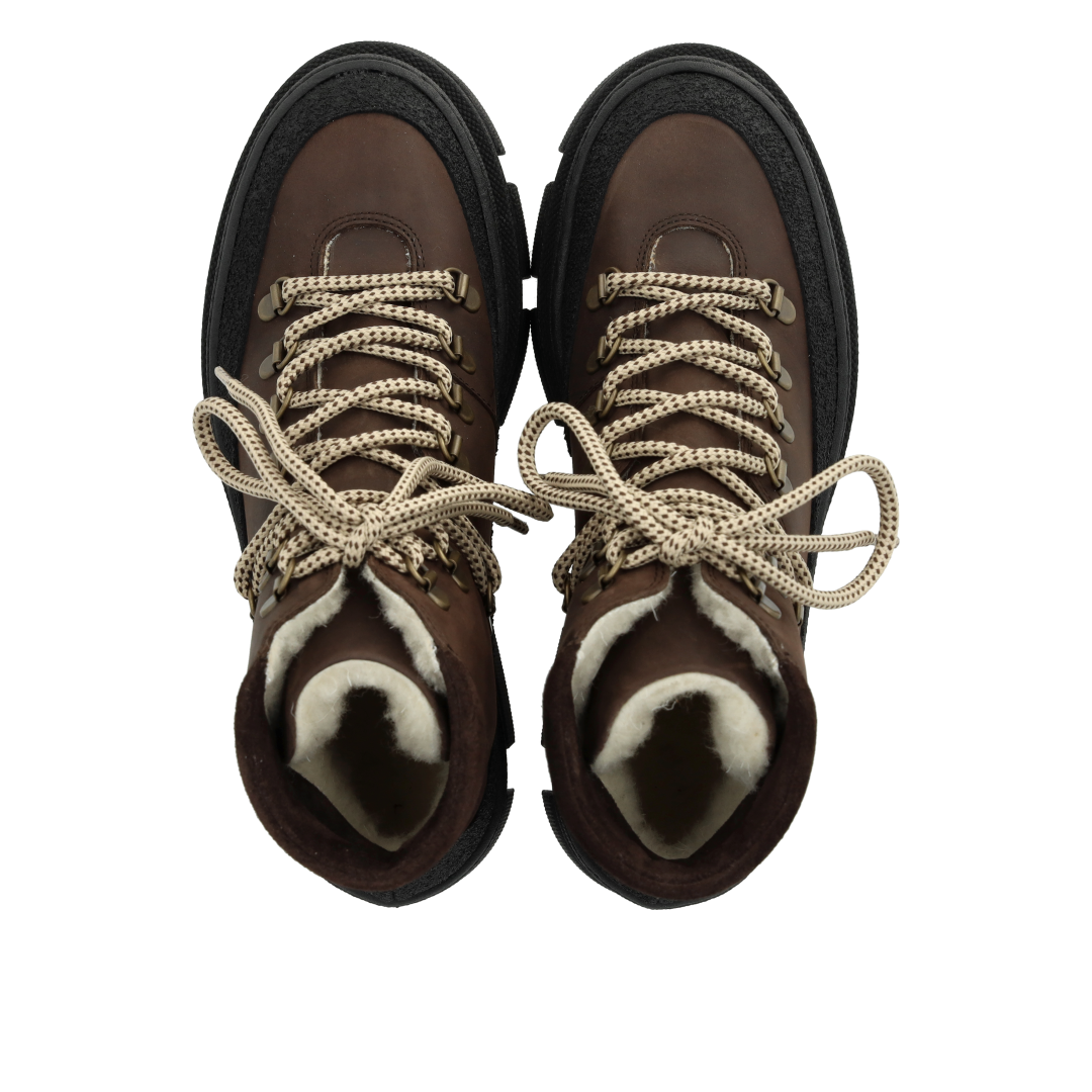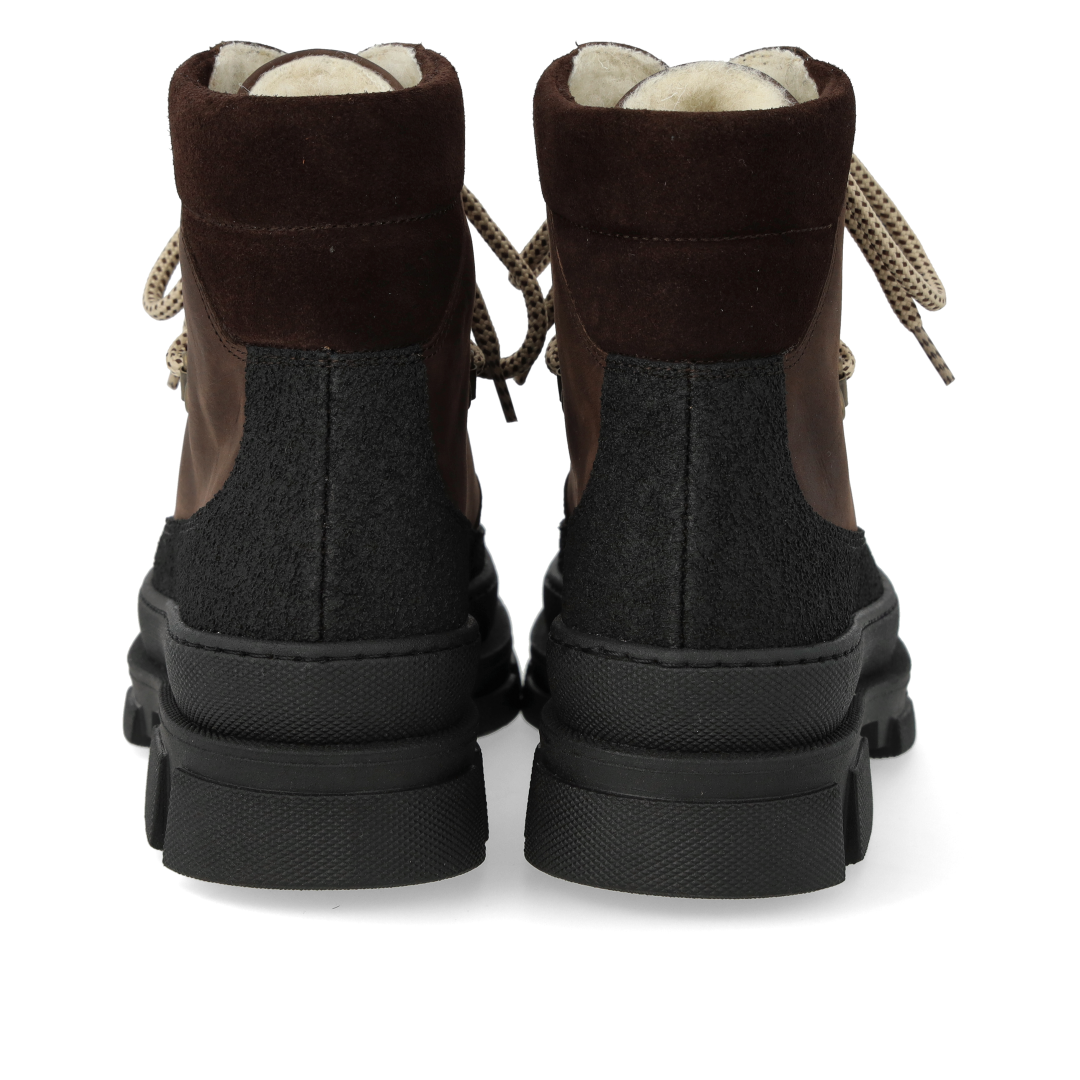 Chunky lace-up boot in leather with soft wool lining and durable detailing. The boot features a round toe, adjustable cotton lace with bronze hardware, padded collar for extra comfort and support and a chunky, soft rubber sole. Crafted in natural and breathable leather. Designed in Denmark and handcrafted with love in Portugal.