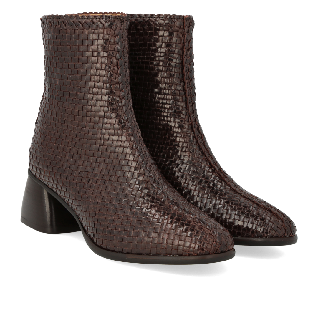 Hand-braided boot with a sculptural block heel