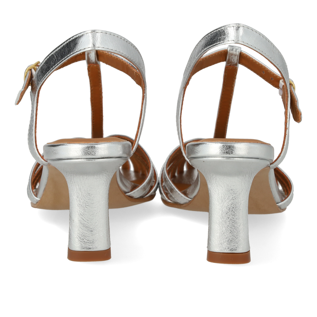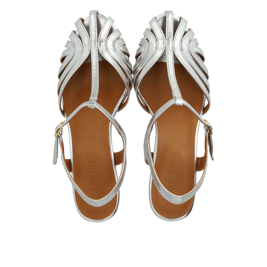 Heeled sandal with beautiful organic front detail