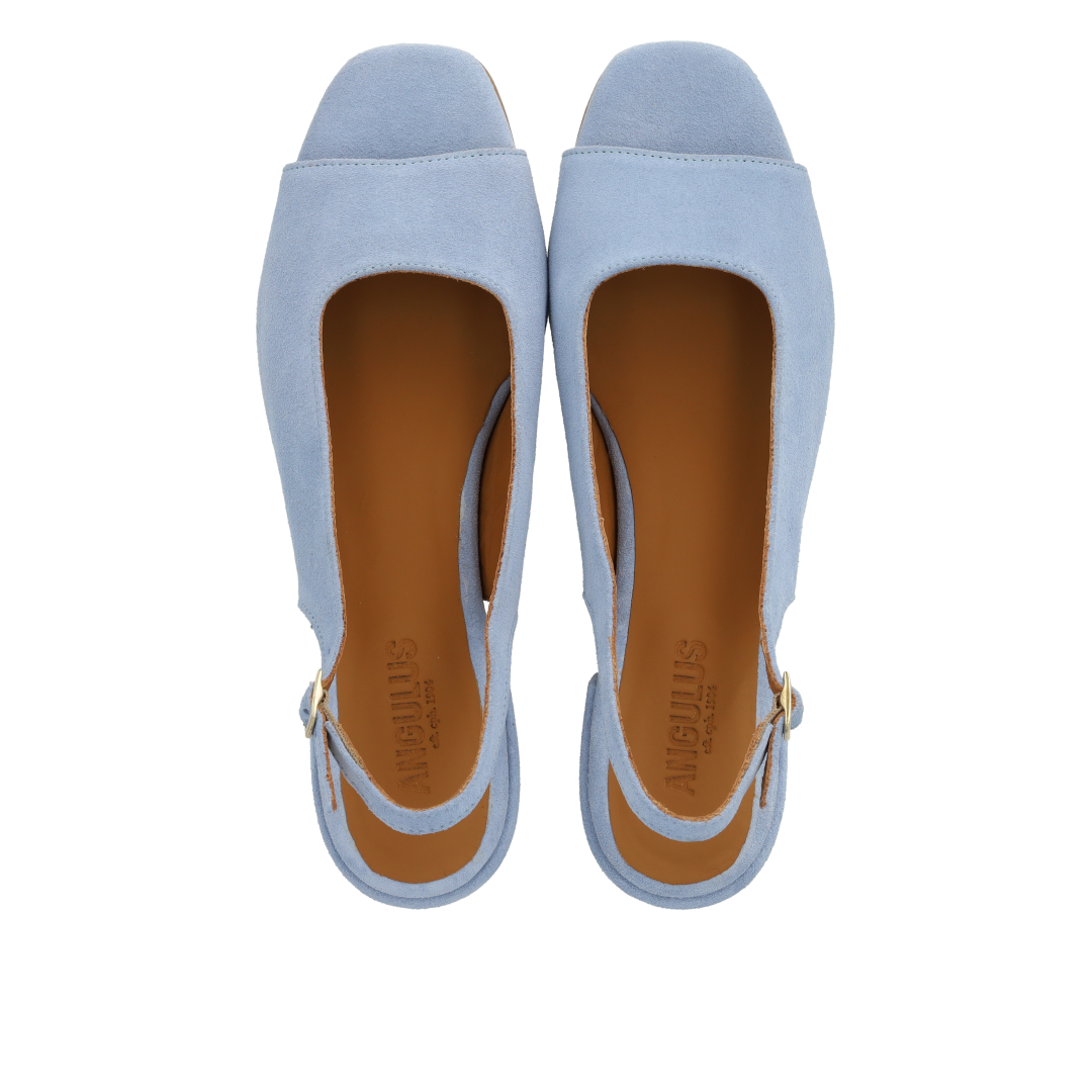 High-heeled slingback sandal in leather with open toe. The sandal features a rounded toe, adjustable closure with gold buckle, padded insole and lining in chrome-free leather, and a light, soft and flexible ANGULUS logo rubber sole with 3.5 cm block heel. Crafted in natural and breathable leather. Designed in Denmark and handcrafted with love in Portugal.