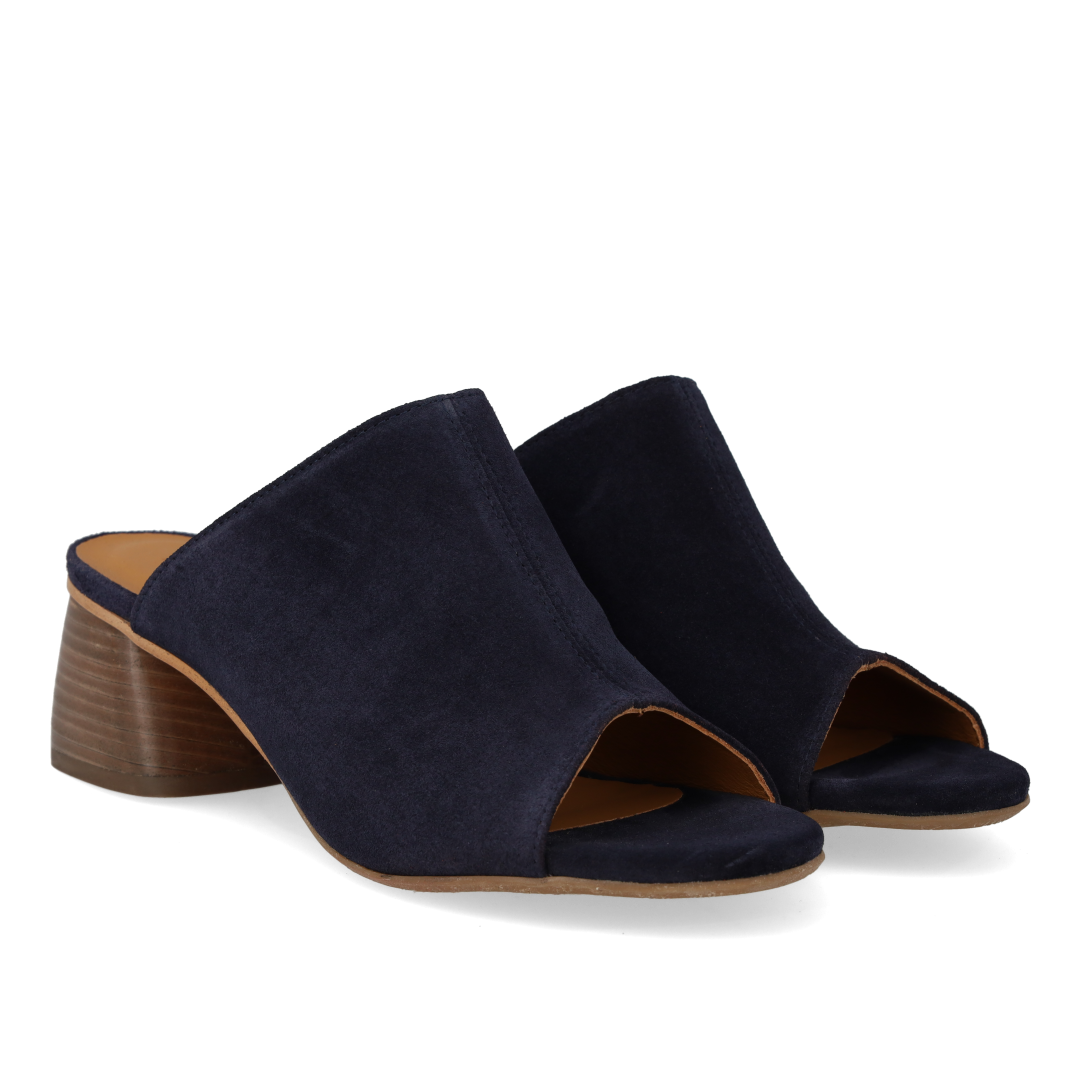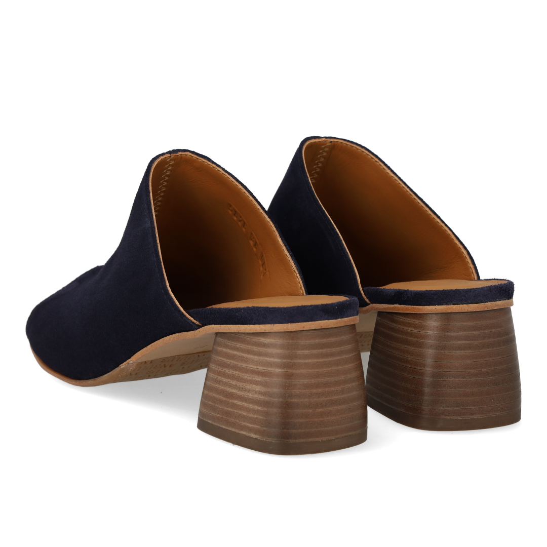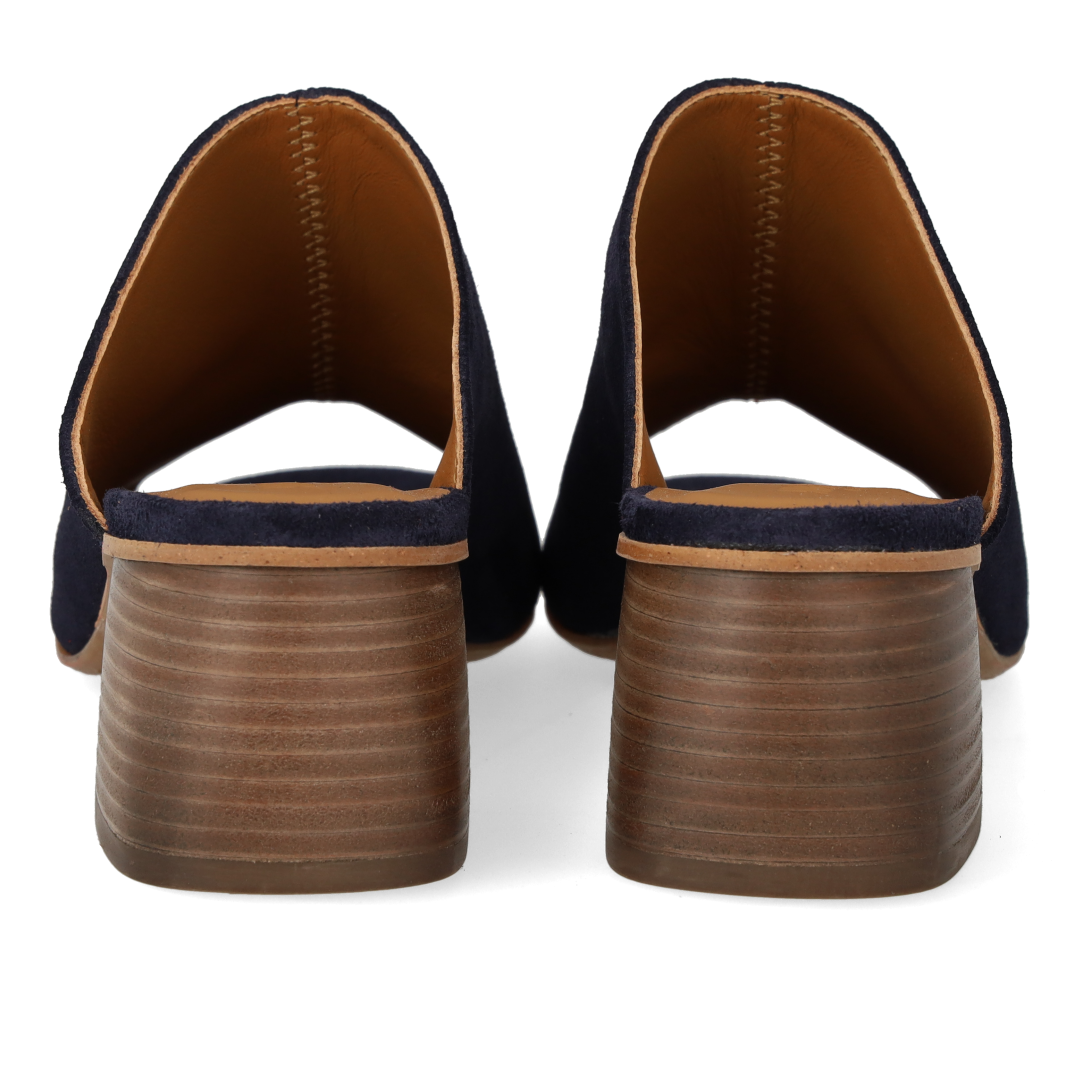 Mule with sculptural wooden heel