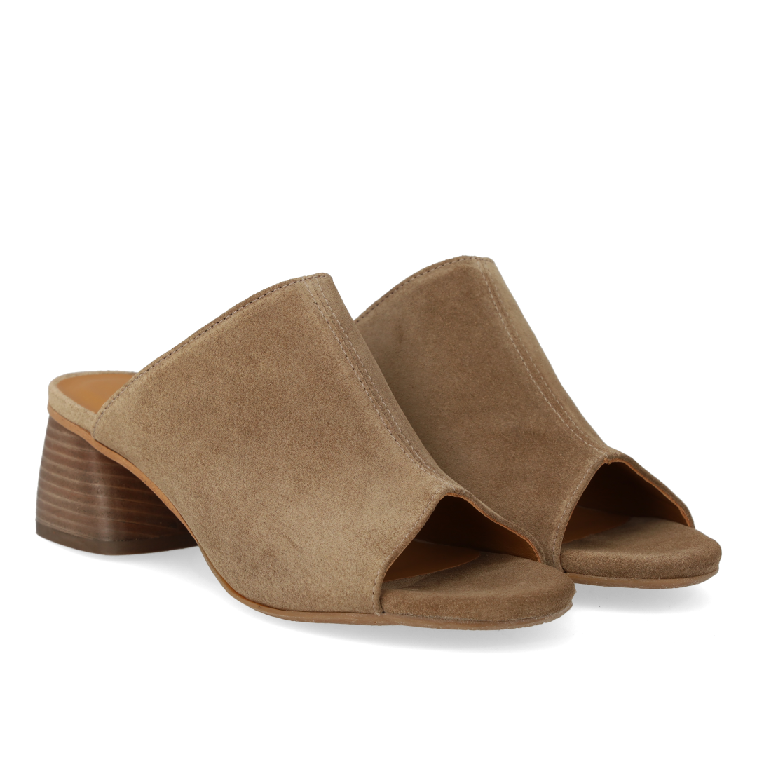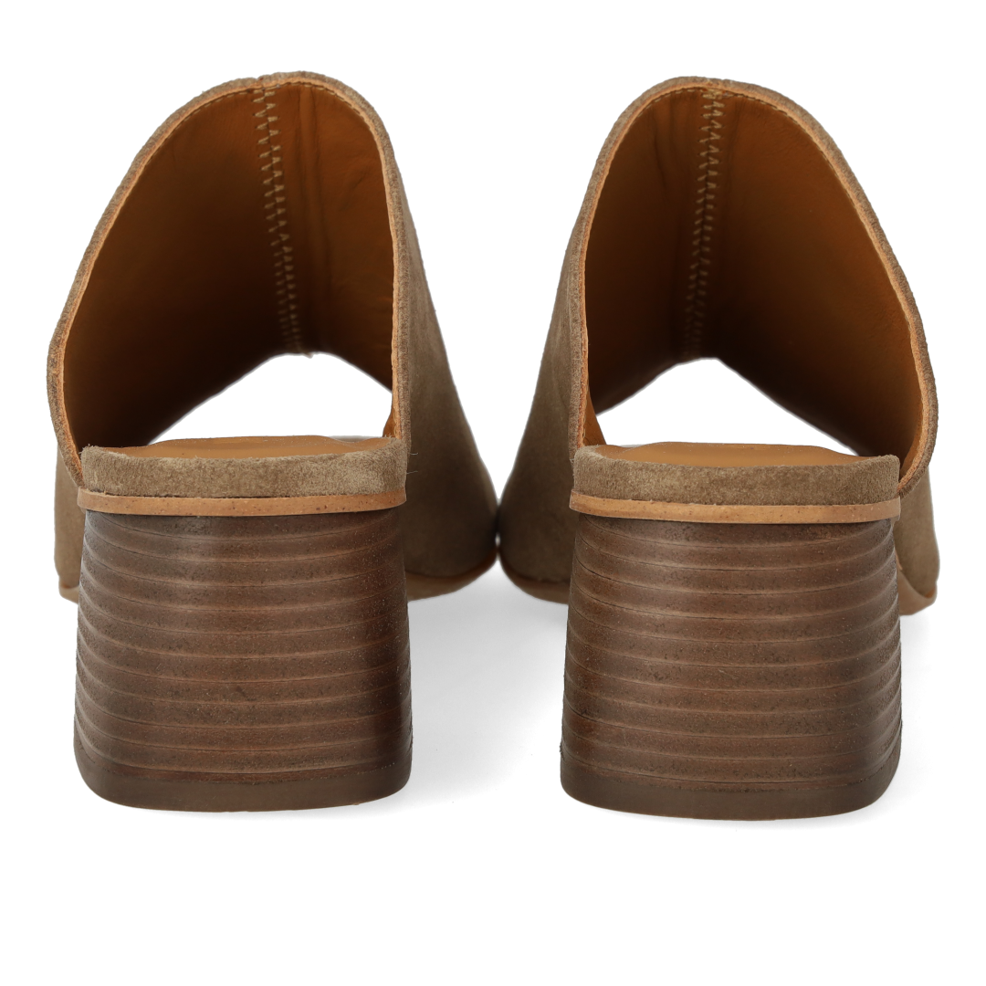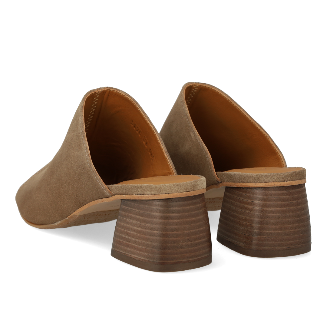 Mule with sculptural wooden heel