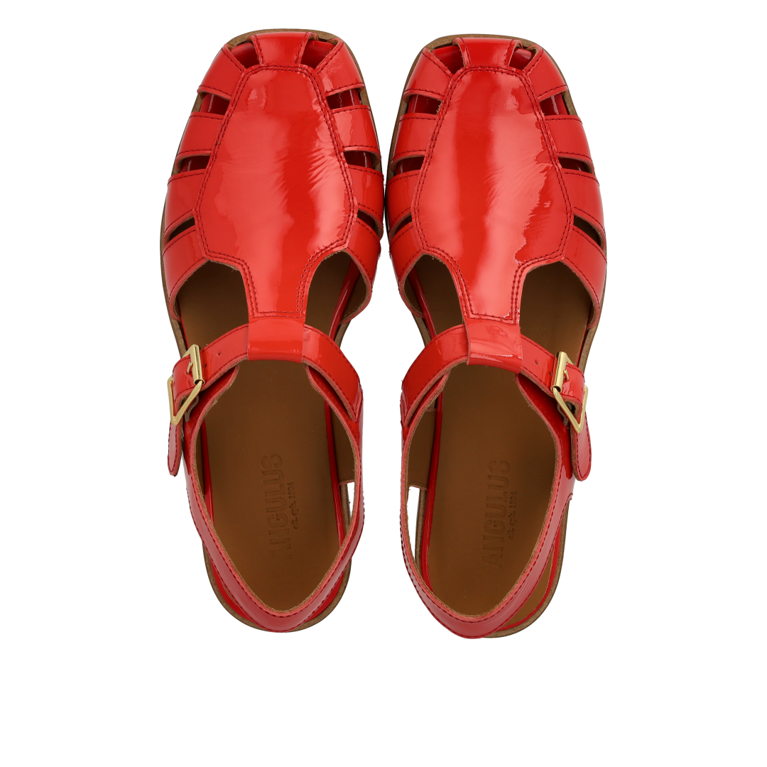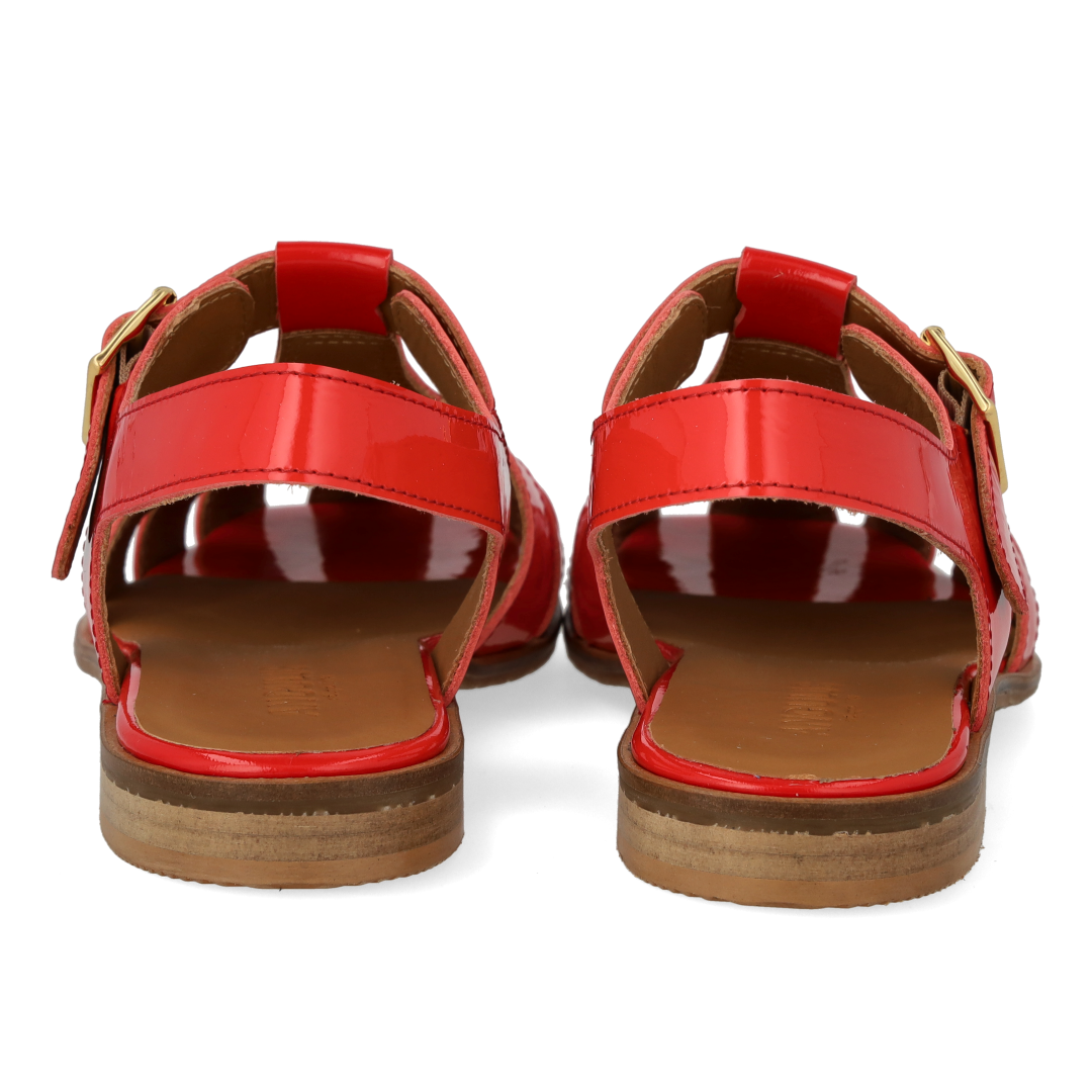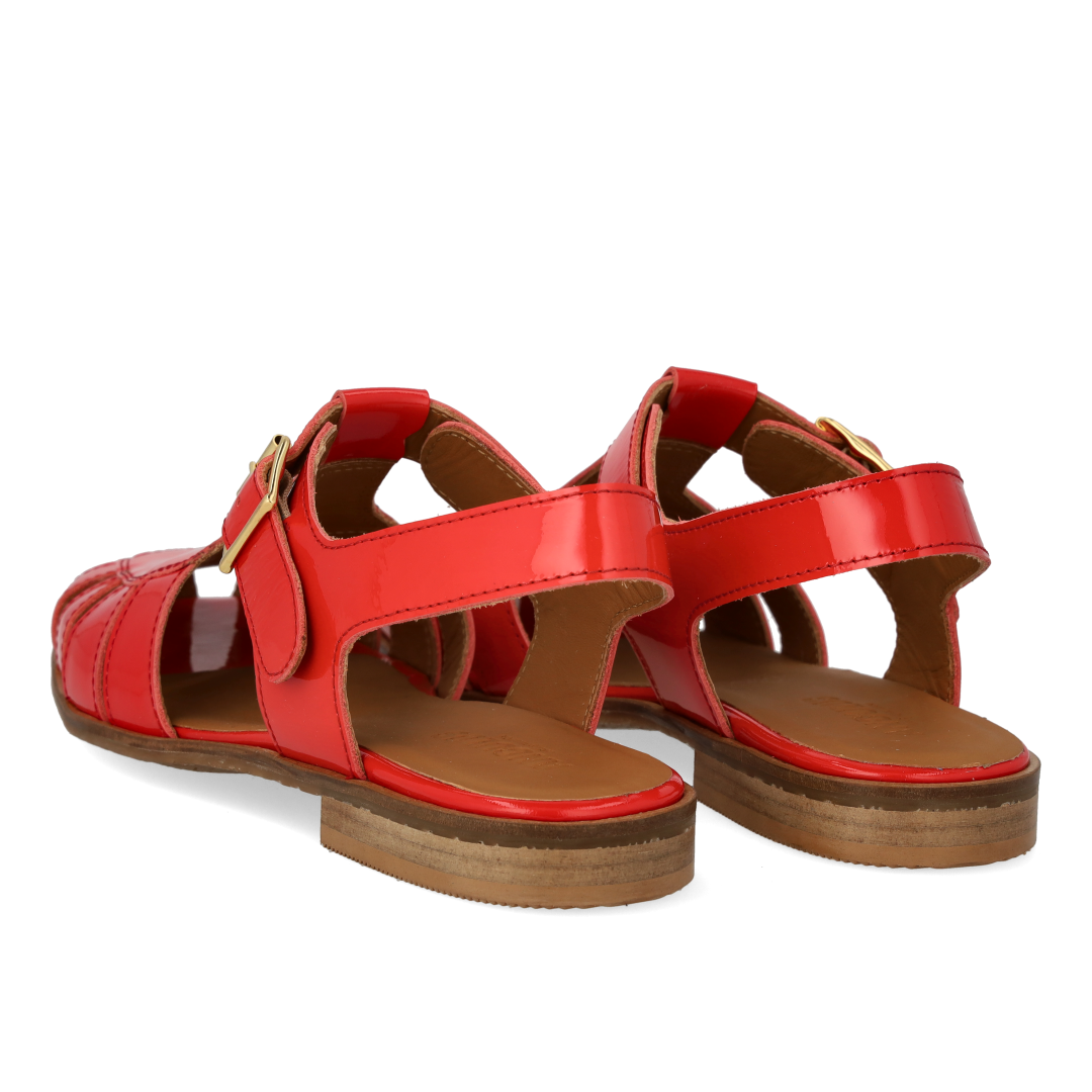 Classic leather fisherman's sandal with decorative hole pattern. The sandal features a moderately square toe, open heel, adjustable ankle strap with gold buckle, padded insole, chrome-free leather lining and logo sole in soft, flexible rubber. Made from natural, breathable leather. Designed in Denmark and lovingly handmade in Portugal.