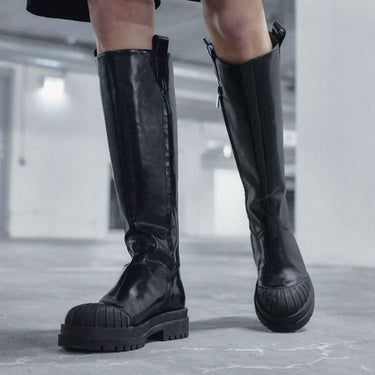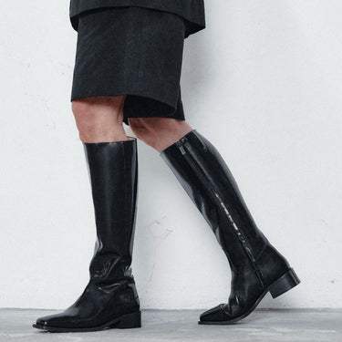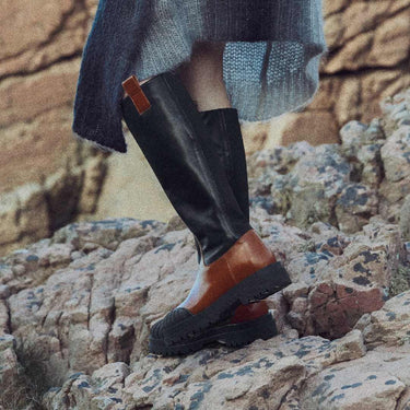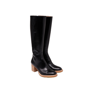 Long shafted boot with sculptural block heelstyle: 7816-1010317€295,00€206,50 /36 | 37 | 38 | 38½ | 39 | 42