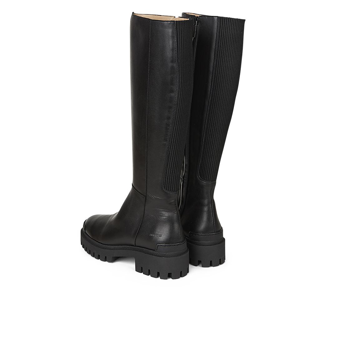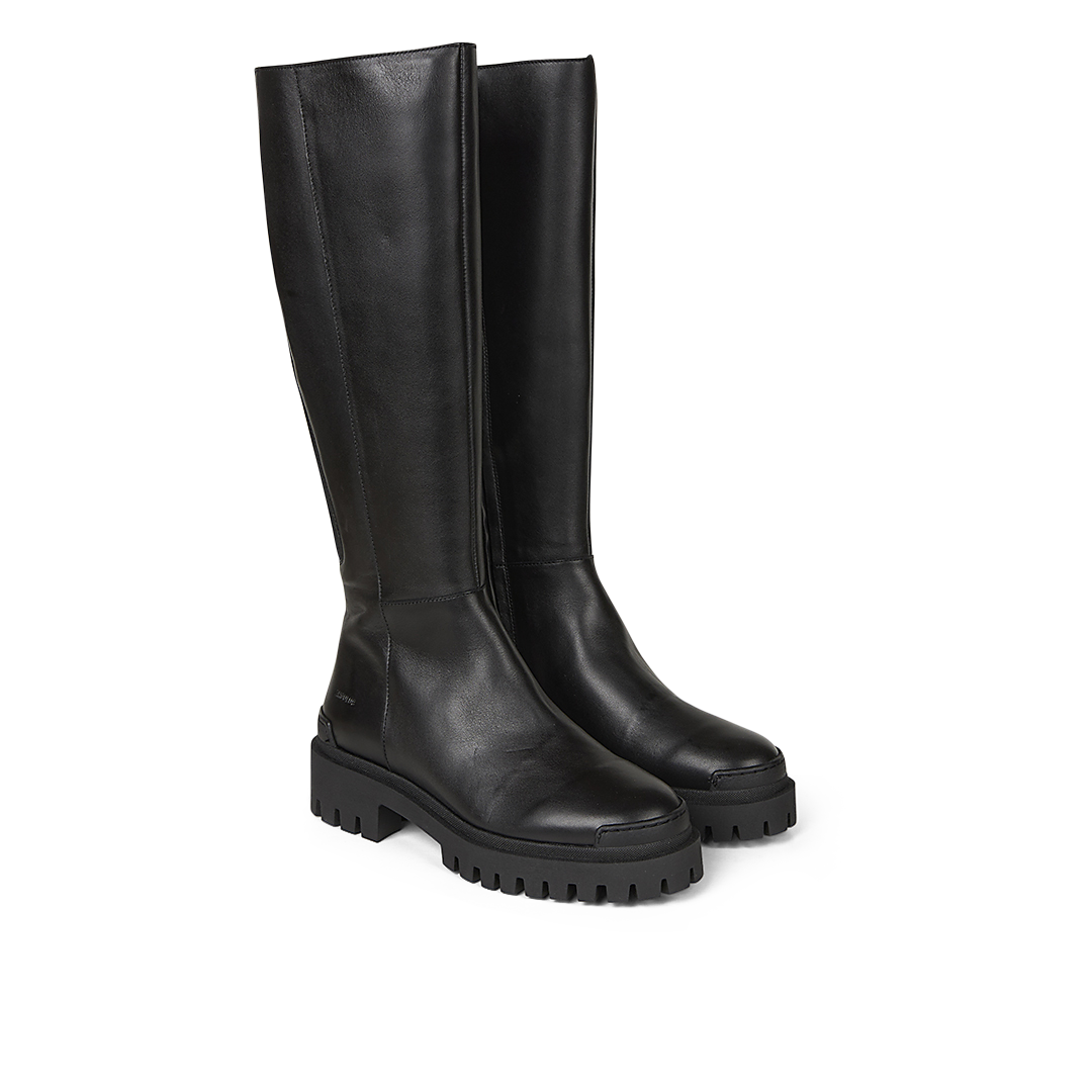 Chunky Chelsea boot with high shaft. The boot features a round toe, a close-fitting, knee-high shaft with functional black elasticated gusset and zip fastening, flexible black rubber track sole that goes up over the toe and heel, embossed logo at the heel, padded insole, leather lining and is crafted in natural and breathable leather. Designed in Denmark and handmade with love in Portugal. The boot is true to size, but if you are between two sizes, we recommend that you take the largest size.