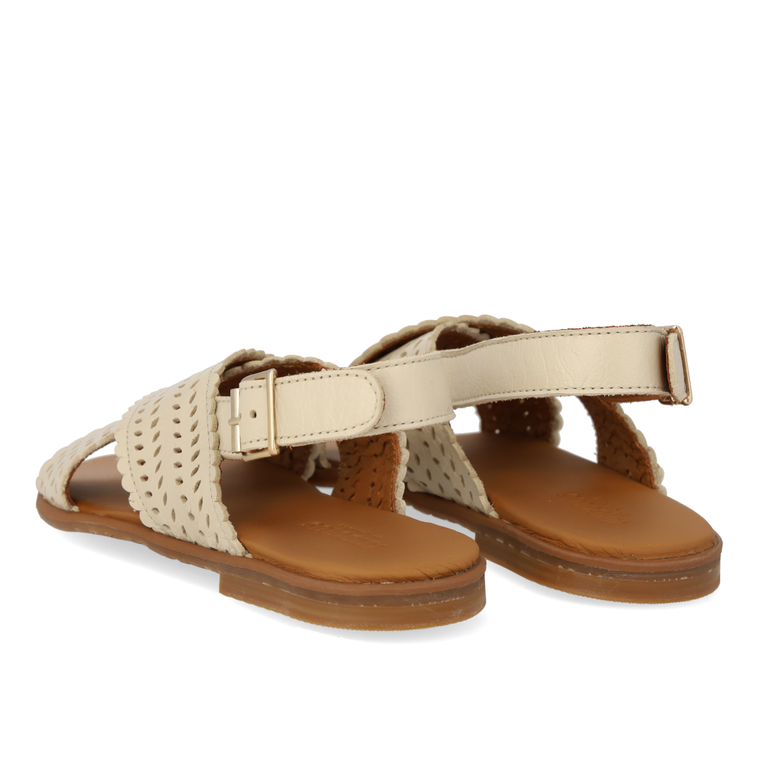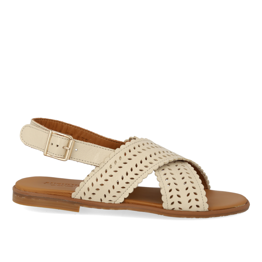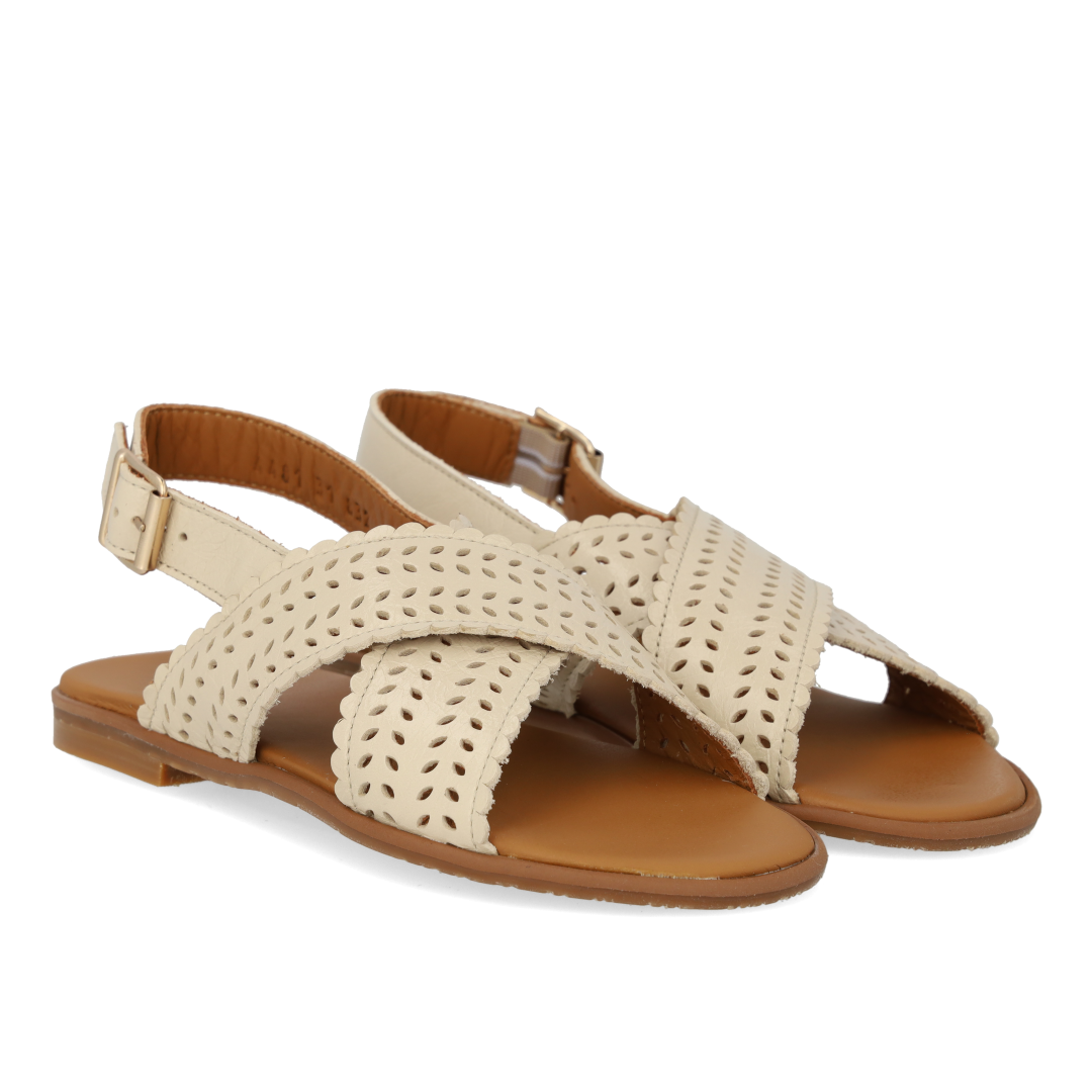 Cross sandal with perforations and buckle