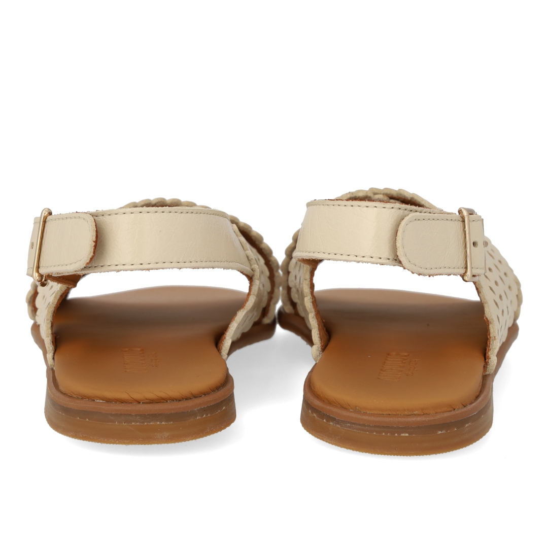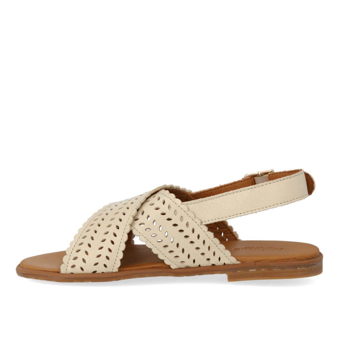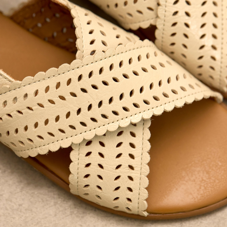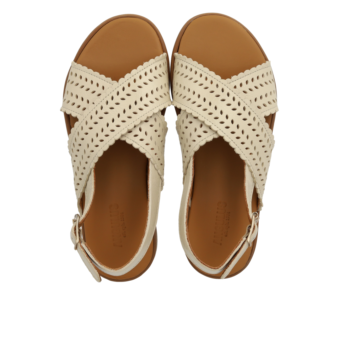Cross sandal with perforations and buckle