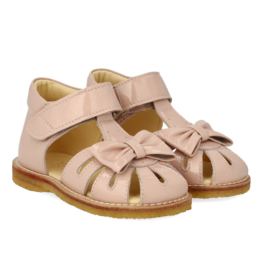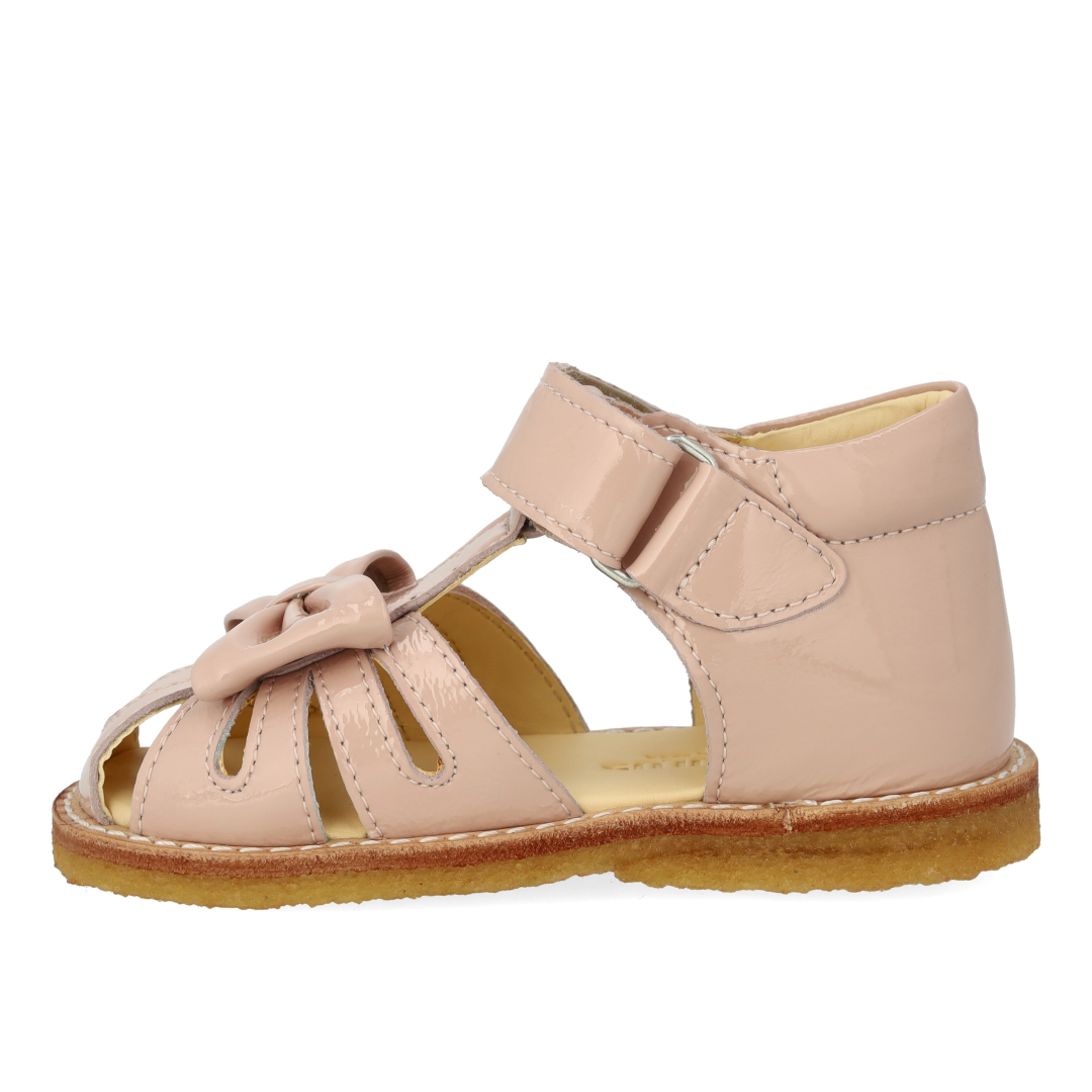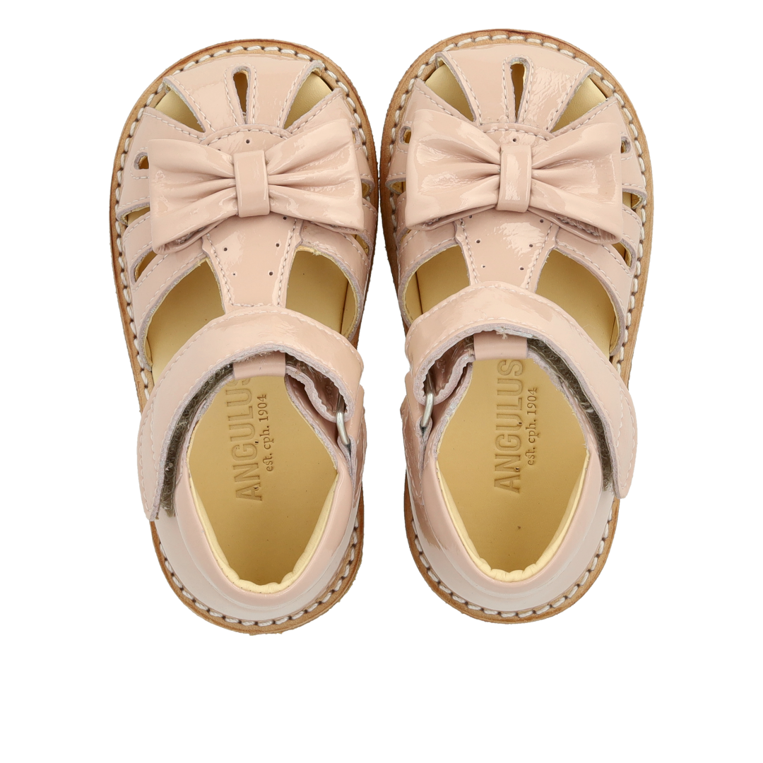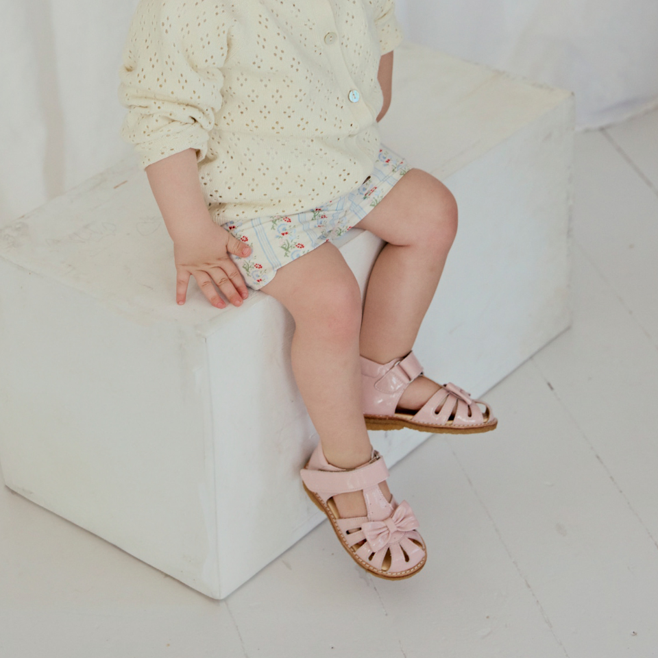 Starter sandal with a bow and velcro closure